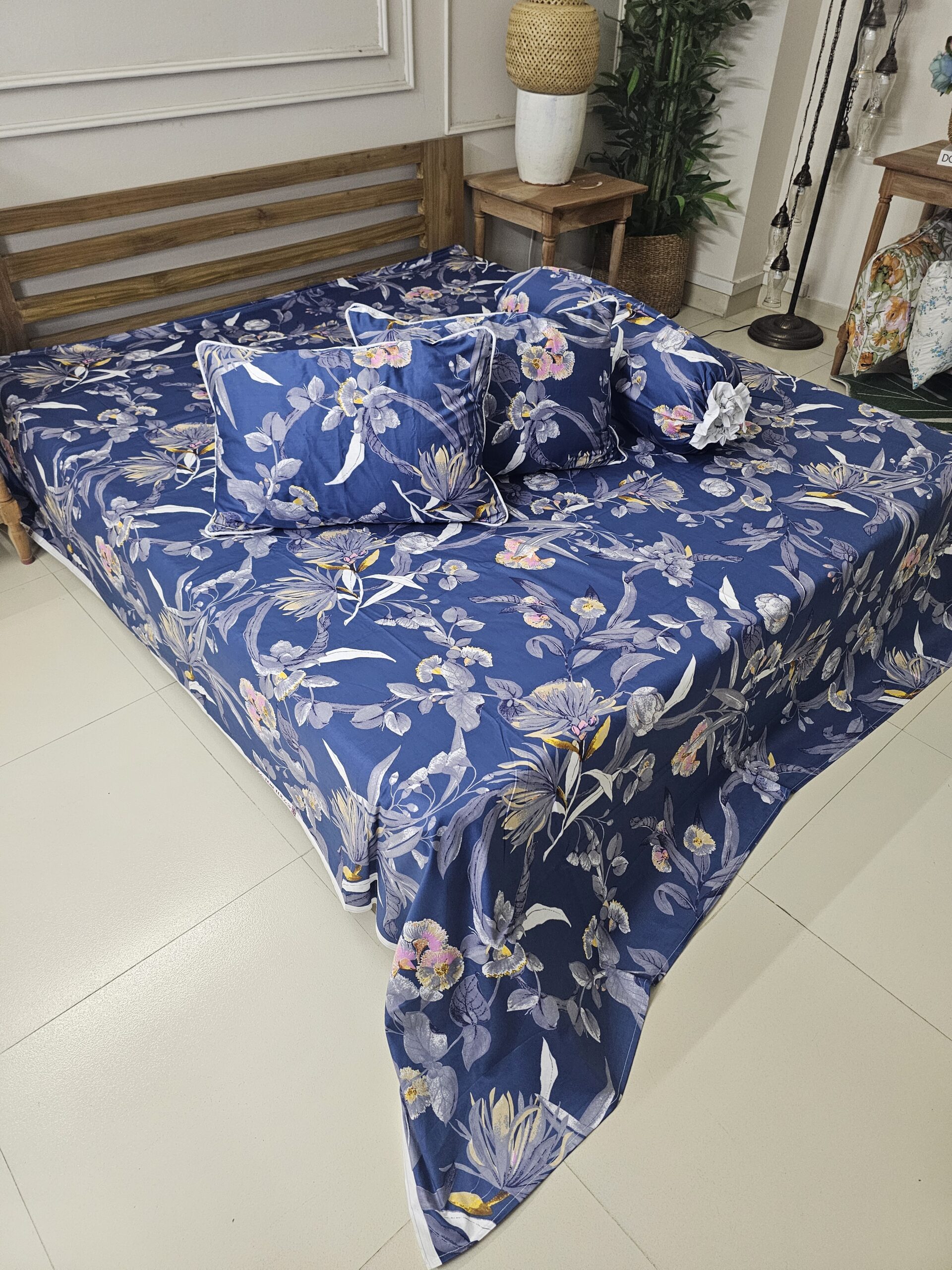 ১. কি কি পাবেন? 1 টা বেড শিট + 2 টা লেস ডিজাইন করা মাথার বালিশের কভার + ১ টা ডিজাইন করা কোল বালিশ কভার
