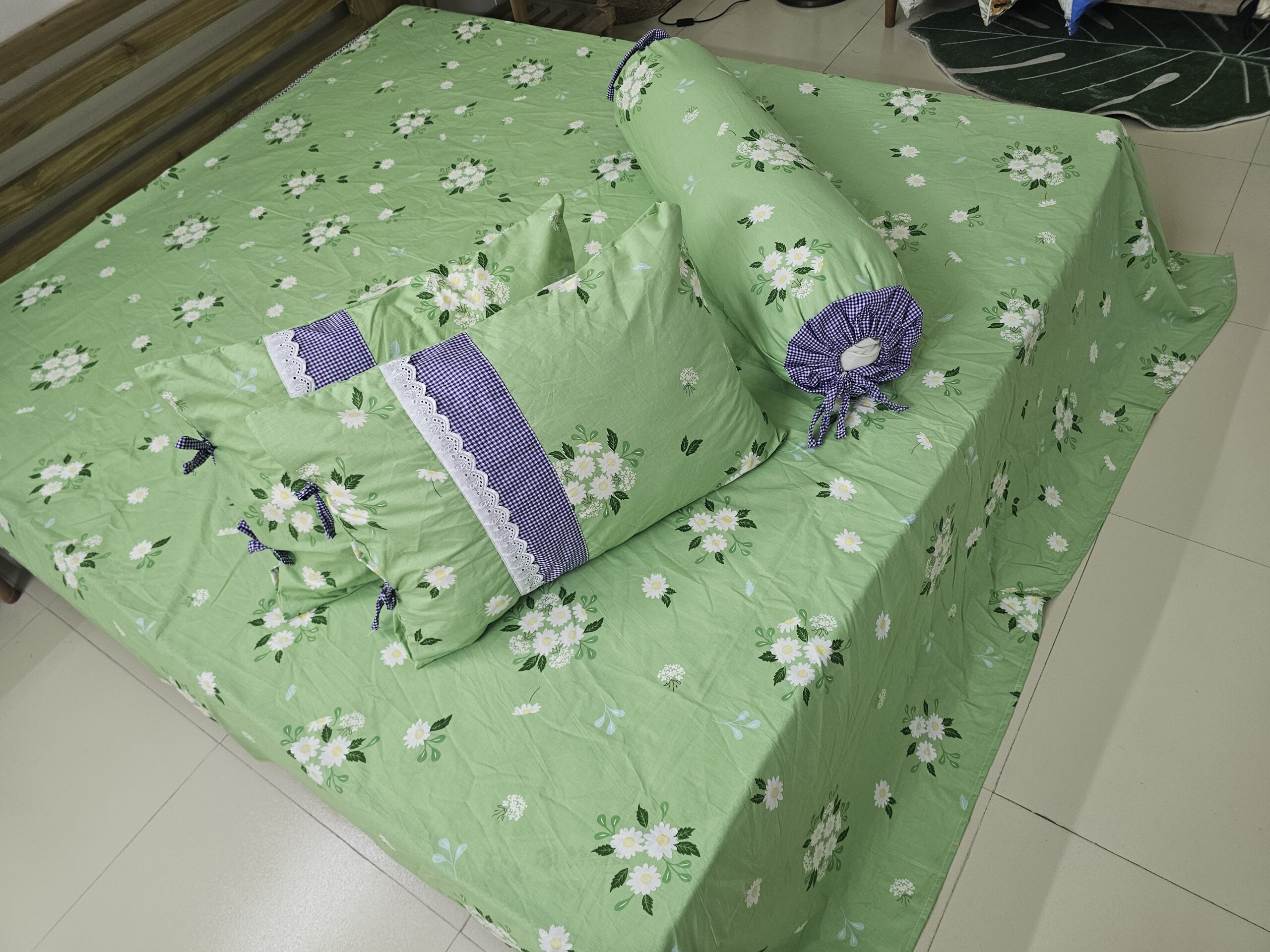 ১. কি কি পাবেন? 1 টা বেড শিট + 2 টা লেস ডিজাইন করা মাথার বালিশের কভার + ১ টা ডিজাইন করা কোল বালিশ কভার